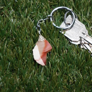 A collection of tumbled crystals polished and rough adjusted to keychains.