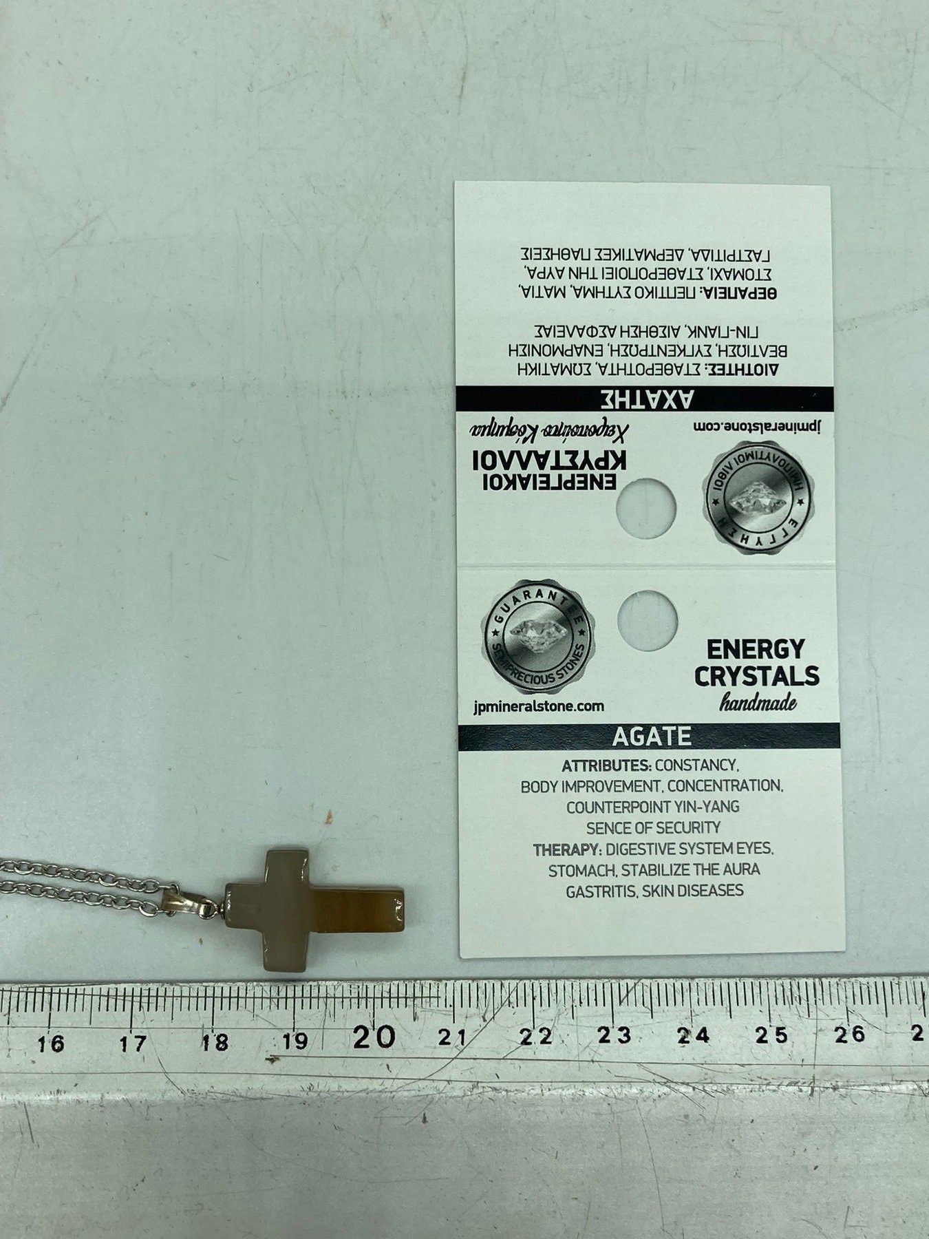 Halskette aus Sterlingstahl mit Kreuz aus Achatkristall