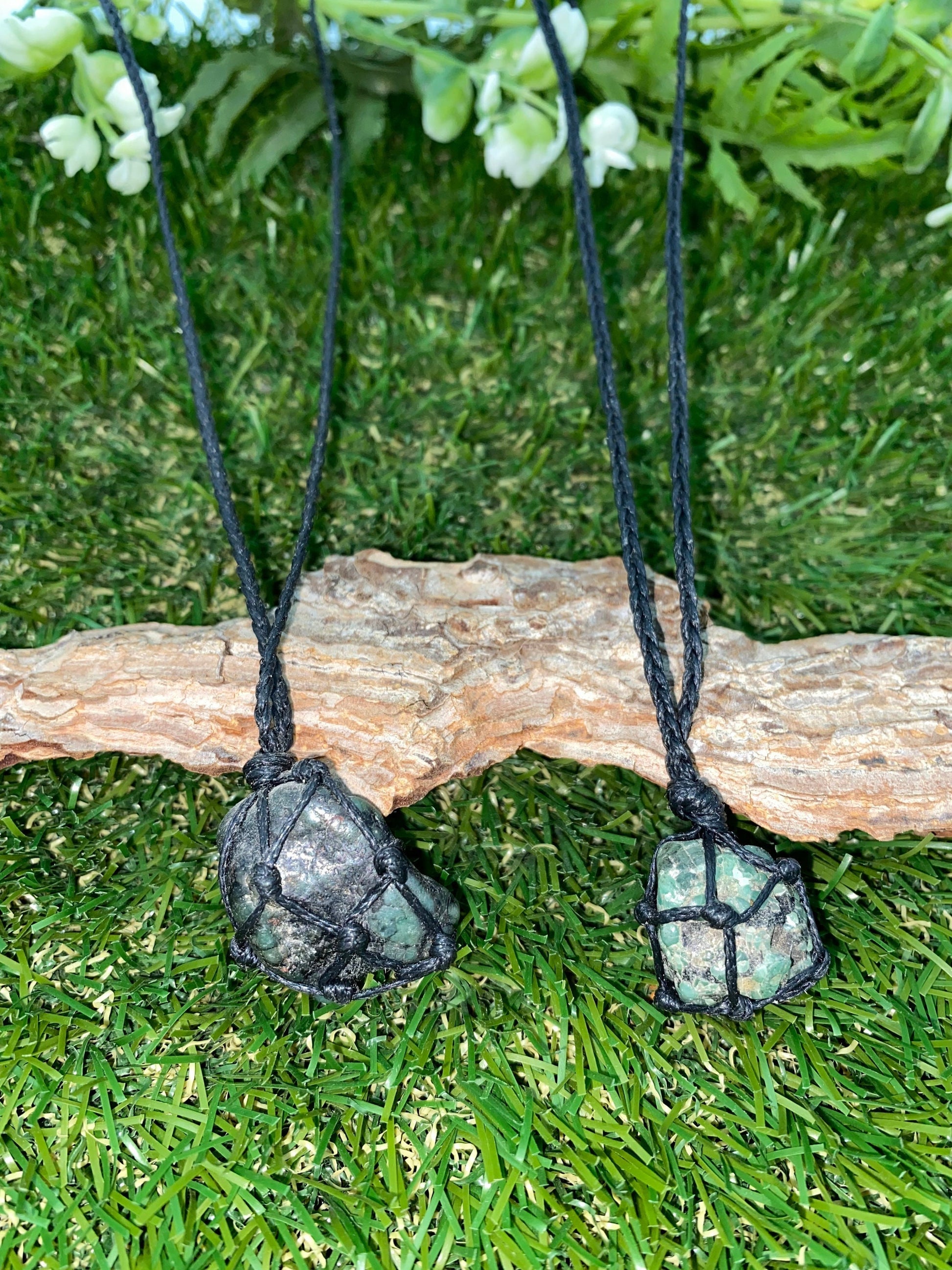 Smaragd polierter Mineralstein, brasilianischer Kristall, Heilung, Makramee, umwickelte Halskette, Schutz, Geschenk, Zubehör