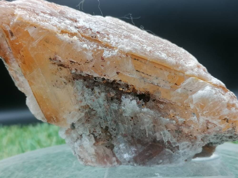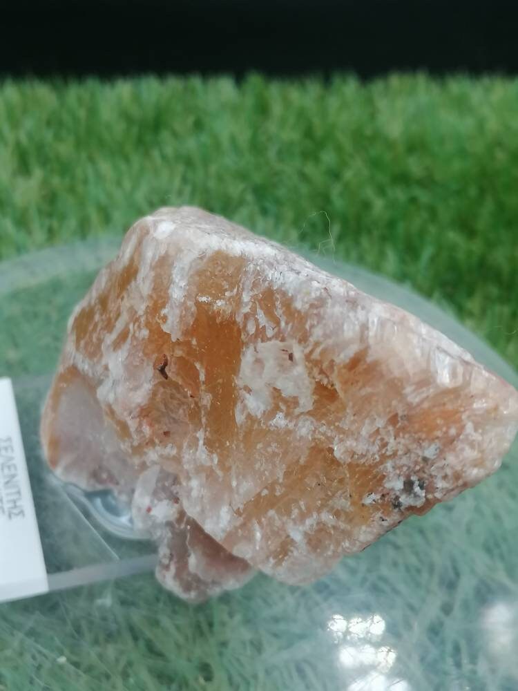 Griechischer roter Selenit, Oxidation von Metall, das auf Plexiglasbasis geklebt ist, Sammlung Stein, Geist, Heilkraft, Geschenk, Dekoration, Schutz