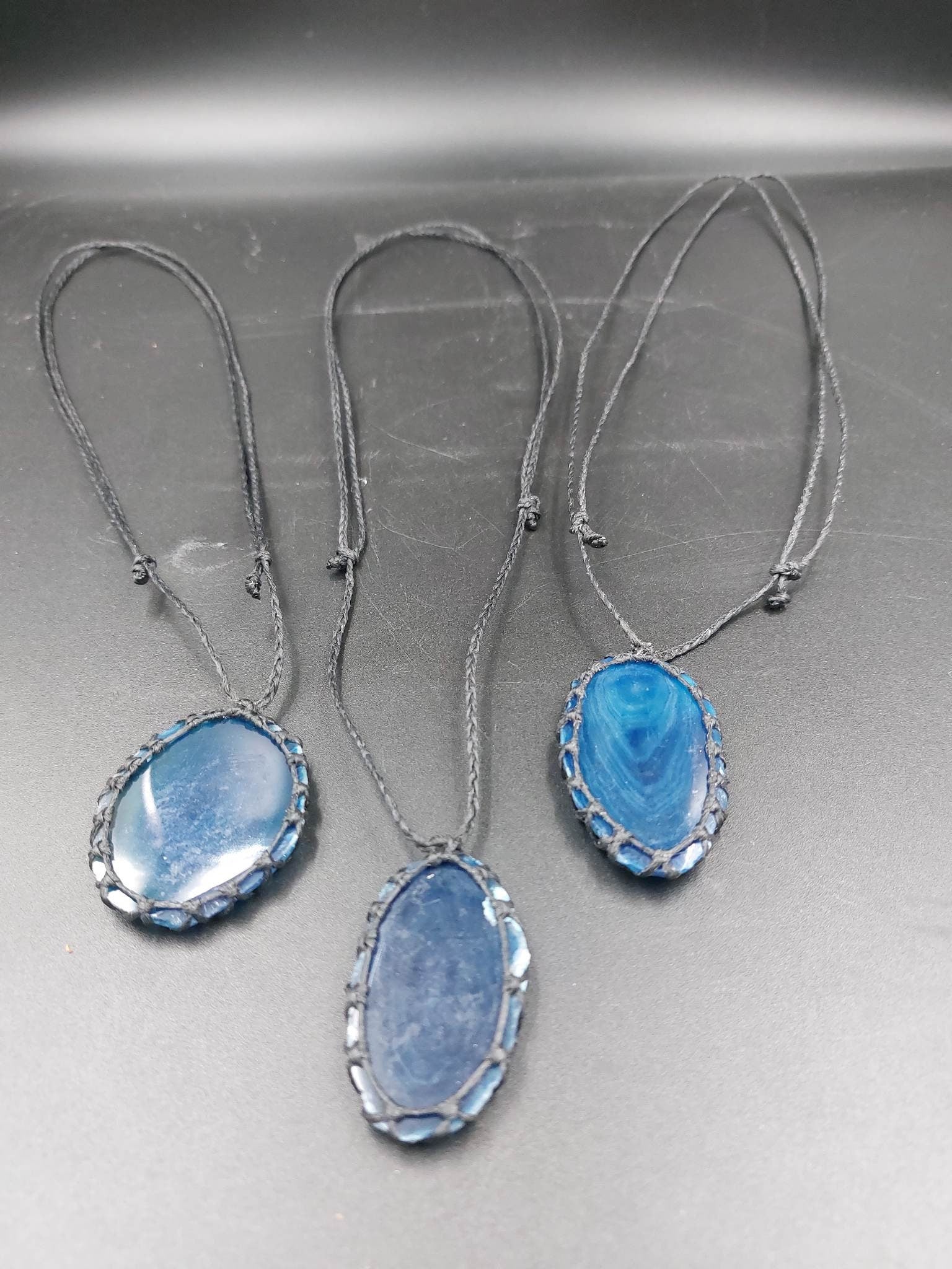 Natürlicher blauer Achat, handgemachte Makramee-Halskette – Heilstein – Geschenkidee – Schutz