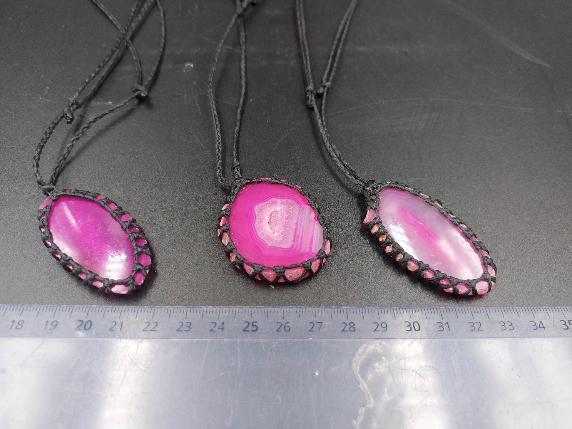 Natürliche rosa Achat handgemachte gewickelte Makramee Halskette - Heilstein - Geschenkidee - Schutz