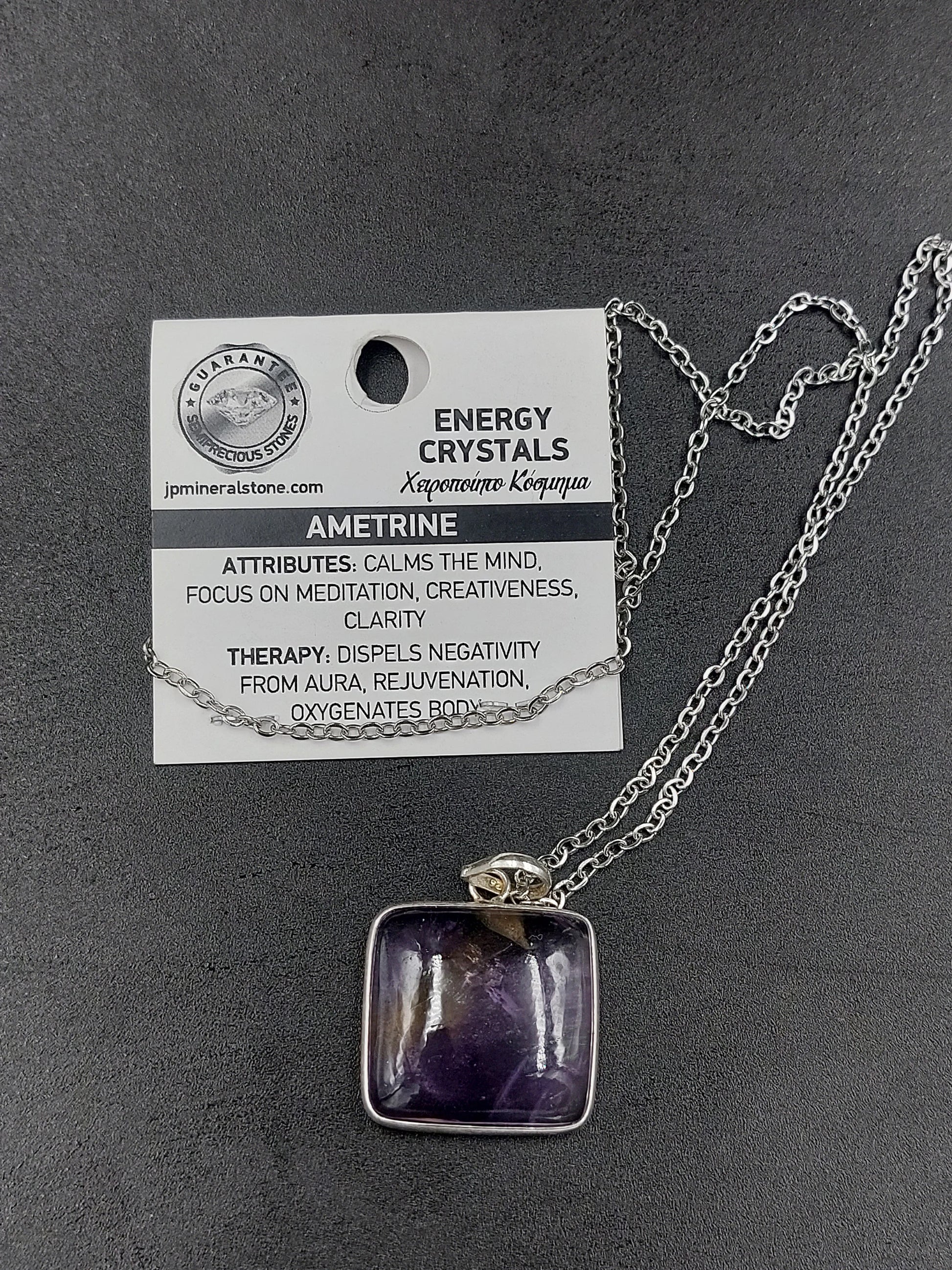 Luxury Ametrine pendant Cabochon Cut polished mineral stone.