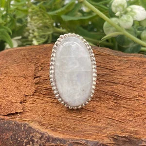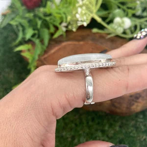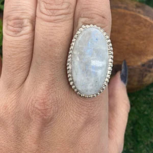 Moonstone Crystal Silver Plated Adjustable Statement Ring