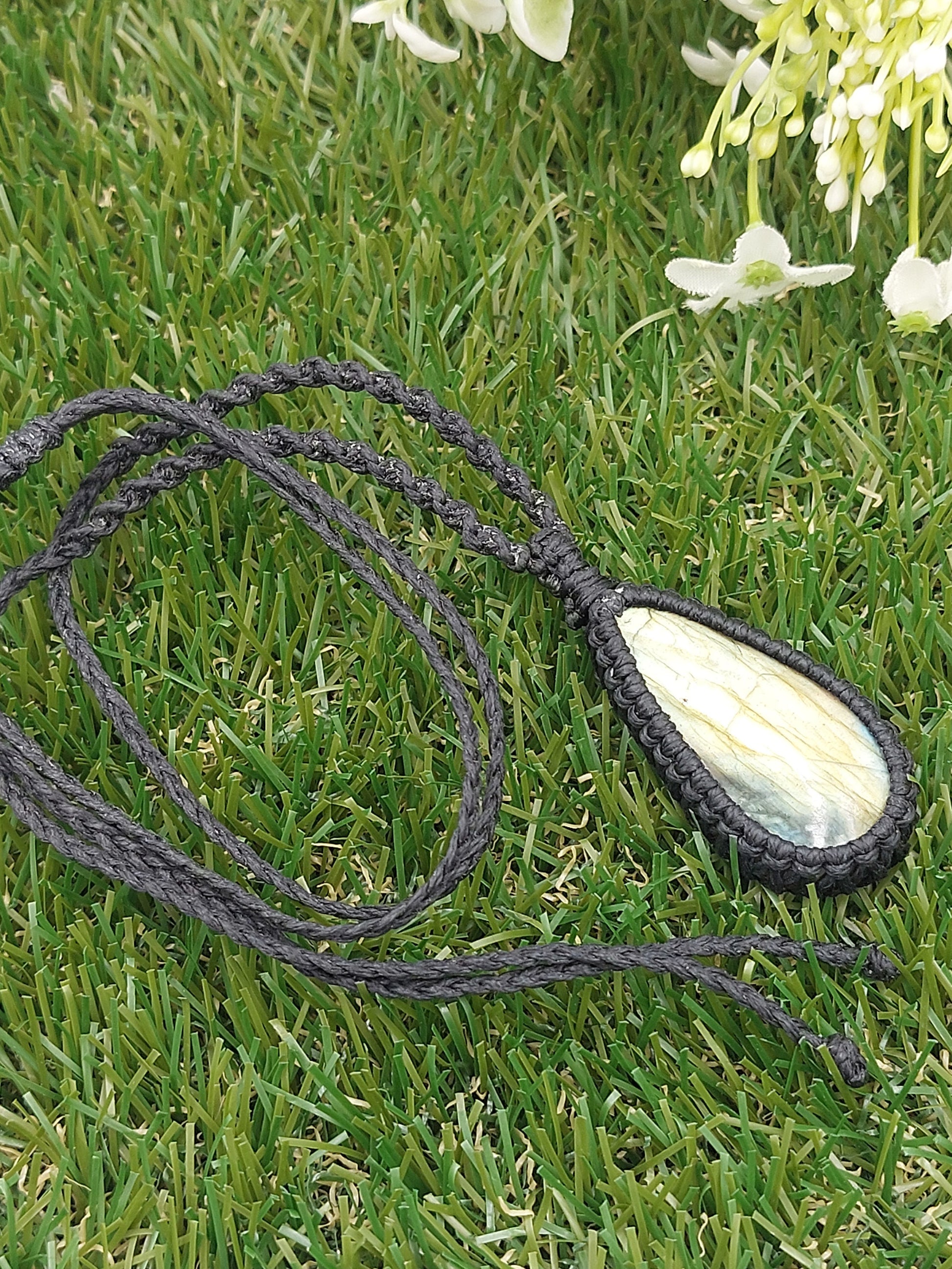 Labradorite Crystal Handmade Wrapped Macrame Necklace