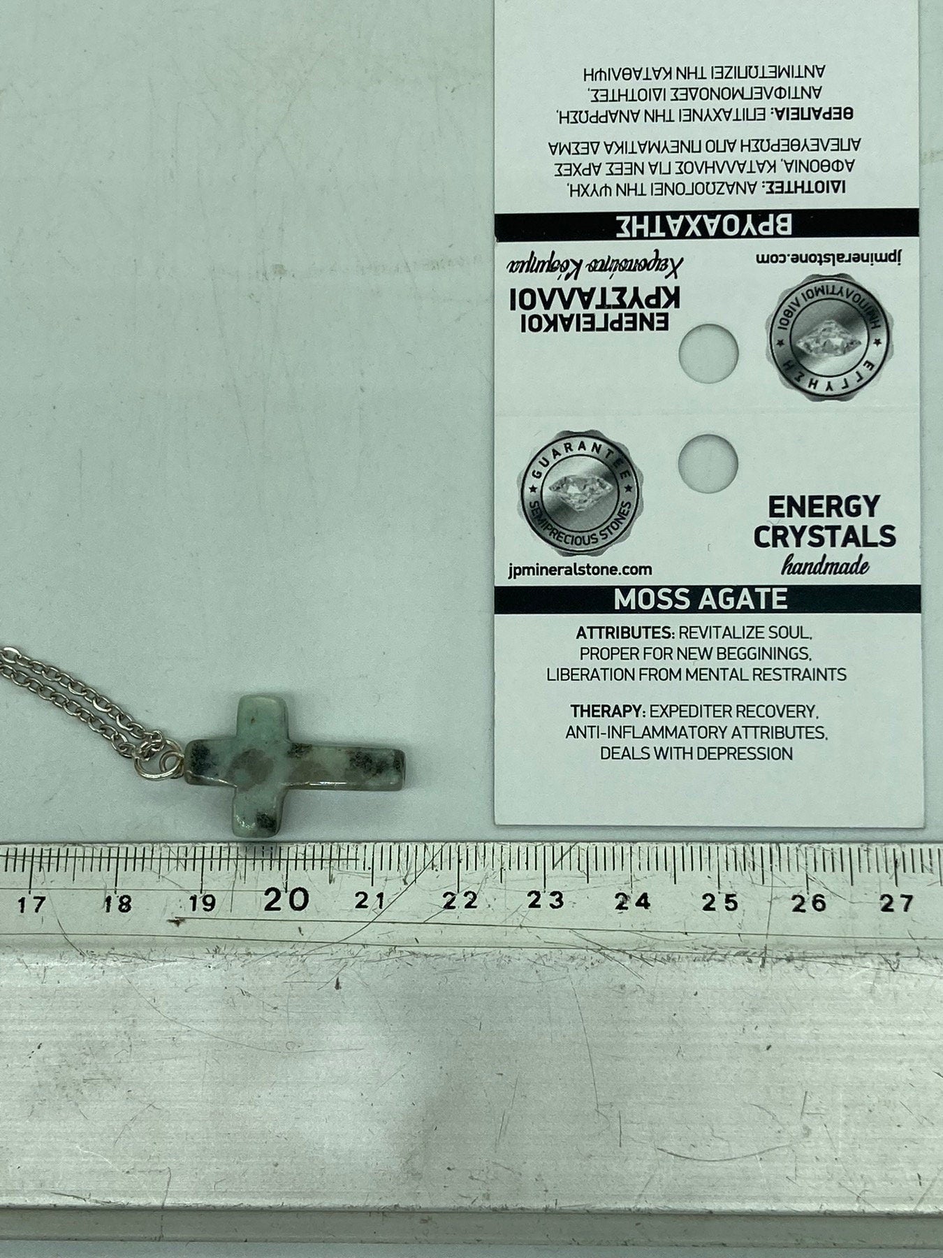 Moss Agate Crystal Cross Sterling Steel Necklace