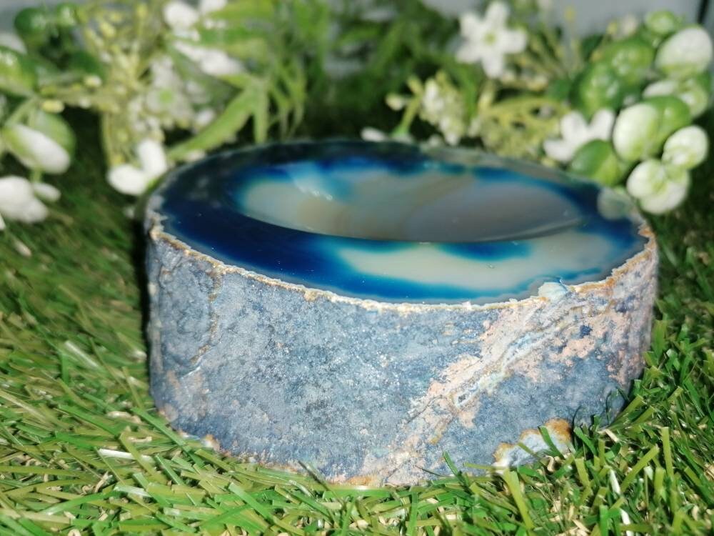 Natural Blue Tie Die Agate Ashtray Healing Crystal Zodiac Mineral Stone