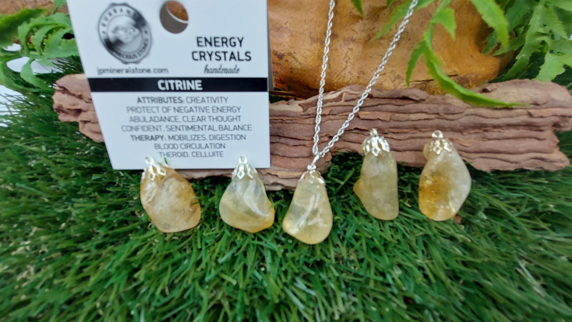 Natural Polished Citrine Sterling Steel Necklace Healing Crystal Accessories Zodiac Mineral Stone
